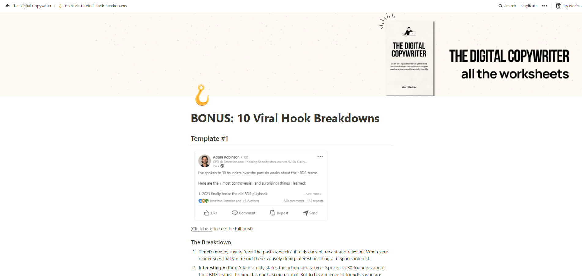 10 detailed viral hook breakdowns so you understand the secrets of viral hook writing...INCLUDING templates to quickly apply yourself: